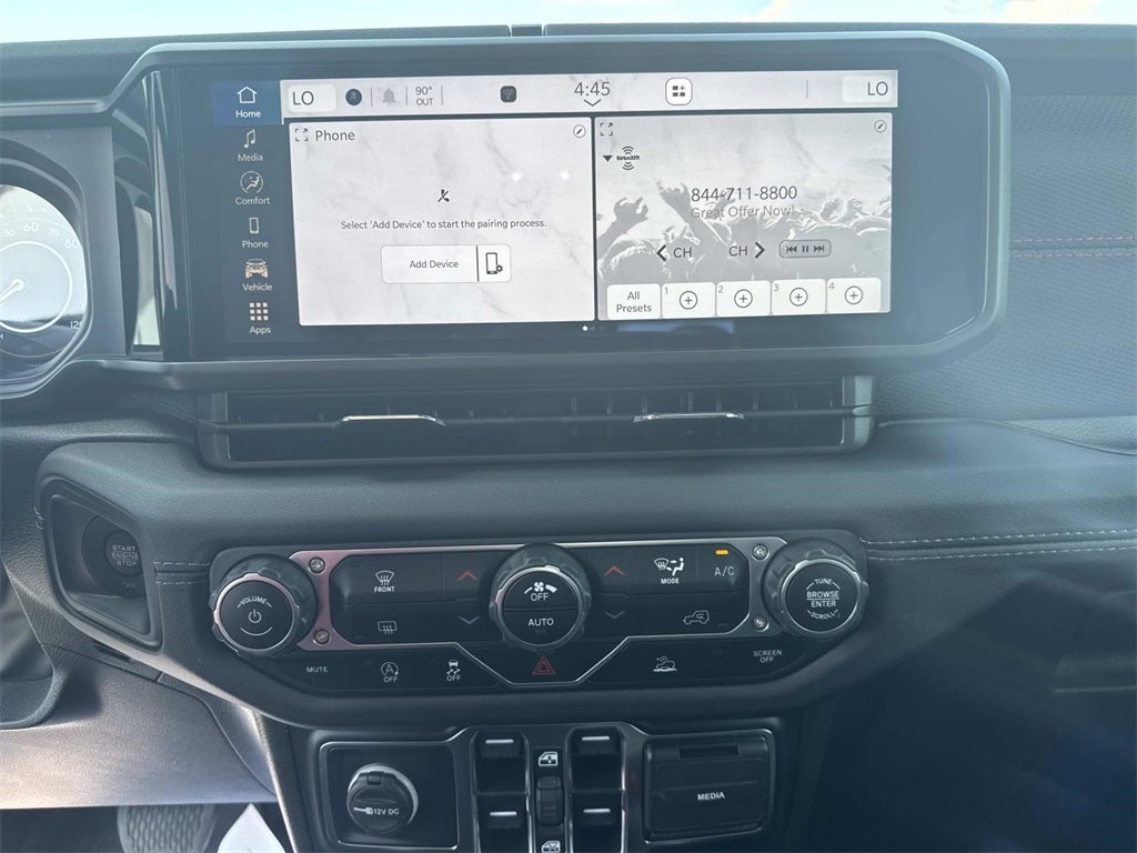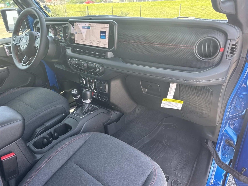 12.3' Touchscreen Display 4-Wheel Disc Brakes 4.10 Rear Axle Ratio 4G LTE Wi-Fi Hot Spot 97 MPH Vehicle Max Speed Calibration ABS brakes Air Conditioning Alexa Built-In Alloy wheels Alpine Premium Audio System Apple CarPlay Auto High Beam Headlamp Control Auto-Dimming Rear-View Mirror Automatic temperature control Black 3-Piece Hard Top Blind Spot & Cross Path Detection Bluetooth® Wireless Speaker Brake assist Cloth Low-Back Bucket Seats Connected Travel & Traffic Services Connectivity - US/Canada Delay-off headlights Driver door bin Driver vanity mirror Dual front impact airbags Dual front side impact airbags Electronic Stability Control Emergency communication system: Jeep Connect For Details Visit DriveUconnect.com Freedom Panel Storage Bag Front anti-roll bar Front Bucket Seats Front Center Armrest w/Storage Front dual zone A/C Front fog lights Front reading lights Fully automatic headlights Google Android Auto GPS Antenna Input GPS Navigation HD Radio Heated door mirrors Integrated Off-Road Camera Integrated roll-over protection Integrated Voice Command w/Bluetooth® Low tire pressure warning MOPAR Spray In Bedliner Occupant sensing airbag Overhead airbag Panic alarm ParkSense Rear Park Assist System Passenger door bin Performance Suspension Power door mirrors Power steering Power windows Quick Order Package 24R Rubicon Radi